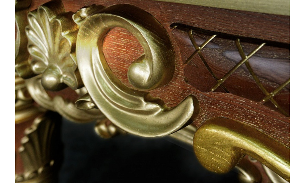 Бильярдный стол «Ренессанс-Лайт Голд» — создан для роскошных и пышных интерьеров. Декор стола наполнен духом эпохи Ренессанса. Выразительная выкраска стола выполняется вручную, в авторской технике с помощью нанесения золотой потали и золочения сусальным золотом.
