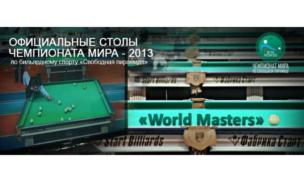 Столы изготовлены по высшим спортивным стандартам для проведения соревнований мирового уровня. Чемпионат Мира-2013 проходил на 24 бильярдных столах Фабрики "Старт" профессиональной серии – "World Masters".